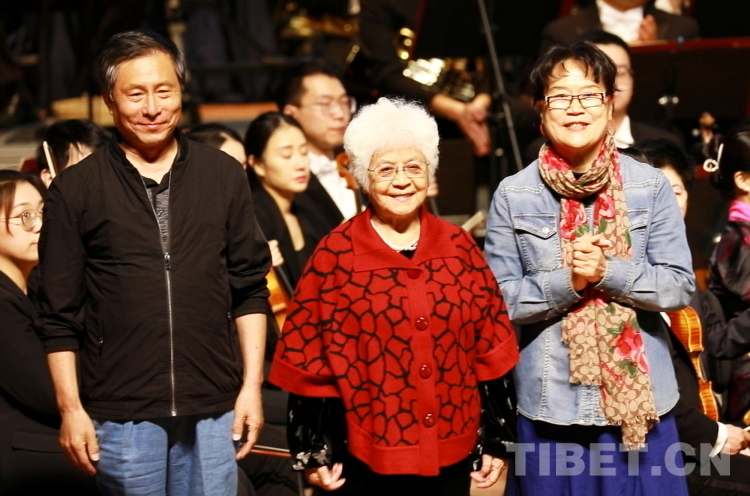 圖為著名表演藝術家、國家一級演員瞿弦和(前排左)和西藏廣播電視臺主持人益西卓瑪主持音樂會 攝影:劉莉
