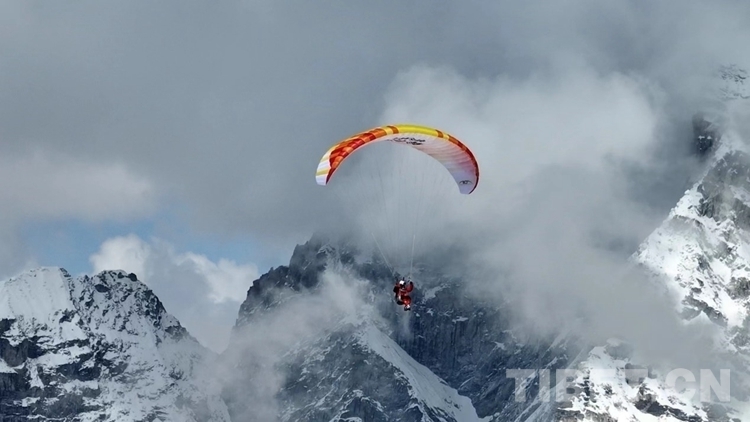 中國(guó)西藏網(wǎng)訊 5月18日,中國(guó)滑翔傘飛行員木子(李生濤)成功從珠穆朗瑪峰海拔8000米處用無(wú)動(dòng)力單人滑翔傘起飛,經(jīng)過(guò)20多分鐘的飛行,安全降落在海拔5400米的珠峰南坳大本營(yíng)附近預(yù)定區(qū)域。