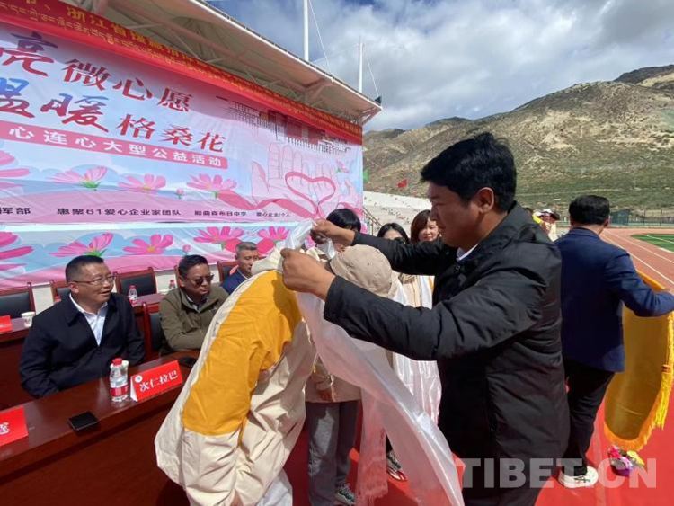 中國西藏網(wǎng)訊 6月19日,浙江金華市惠聚61愛心企業(yè)家團隊萬里送愛心,在西藏森布日中學(xué)舉行“點亮微心愿·溫暖格桑花”公益活動。