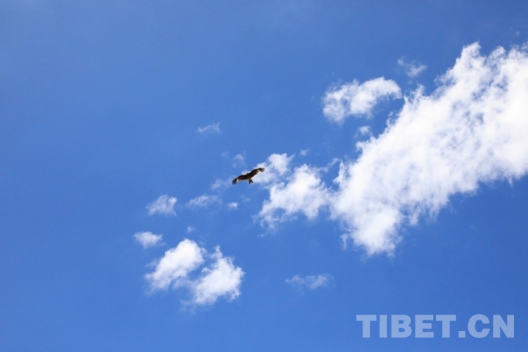 圖為藍(lán)天上盤旋的雄鷹 攝影:王茜