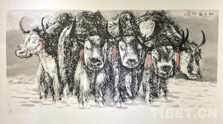 據(jù)了解,汪仕民先生,在西藏生活了三十余年,從事專業(yè)繪畫也已二十多年了。作為一名知名的職業(yè)畫家,西藏地域和人文環(huán)境是其創(chuàng)作題材選取的重要方向,他選取雪域牦牛作為繪畫方向課題研修,已有十余年之久。其創(chuàng)作成果形成了自身獨(dú)特而豐富的藝術(shù)特點(diǎn)和語言,作品流露著對(duì)西藏自然環(huán)境的敬畏,涌動(dòng)著對(duì)西藏人文歷史的感悟。