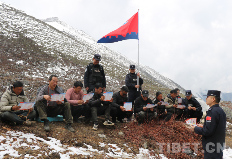 圖為林芝臥龍邊境派出所民警在蟲草采挖區(qū)為群眾宣傳法律知識 攝影:張正華