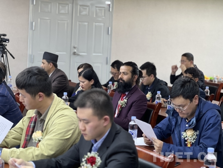 圖為尼泊爾研修班的學員代表、尼中文教協(xié)會秘書長蒂利普·普拉薩德·阿查利亞在做發(fā)言 攝影:德吉卓瑪