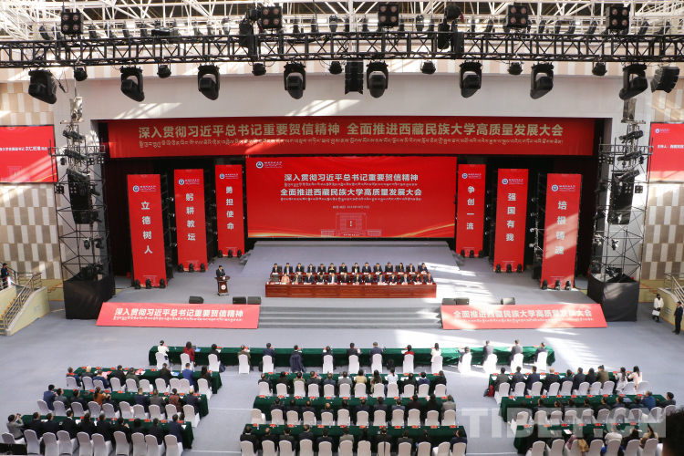 圖為深入貫徹習近平總書記重要賀信精神、全面推進西藏民族大學高質量發(fā)展大會現(xiàn)場
