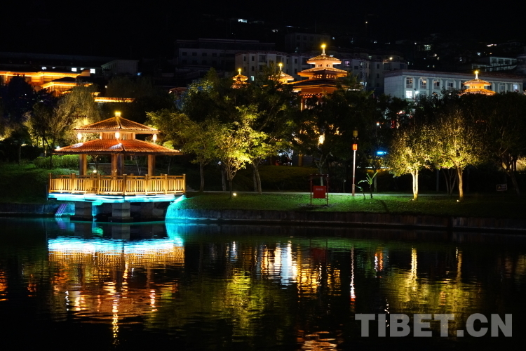 從福建援藏到廣東援藏,墨脫縣城的迅速發(fā)展離不開援藏兄弟省份不遠(yuǎn)千里深入喜馬拉雅腹地,走進(jìn)這朵圣地蓮花。蓮花圣地公園是每一個(gè)來(lái)墨脫縣旅游的人必打卡的地方,這里曾經(jīng)是一片沼澤地,在廣東省第七批援藏工作隊(duì)的規(guī)劃和建設(shè)下于2016年4月竣工,如今有湖泊、曲廊、涼亭、籃球場(chǎng)等齊全的基礎(chǔ)設(shè)施和園林景觀,成為了游客和當(dāng)?shù)厝诵蓍e的好去處。夜幕降臨,蓮花圣地公園內(nèi)的景觀燈倒映在湖泊當(dāng)中,一位來(lái)自四川的游客一邊拍照一邊和同行伙伴說(shuō)“這里巴適得很?!?nbsp;