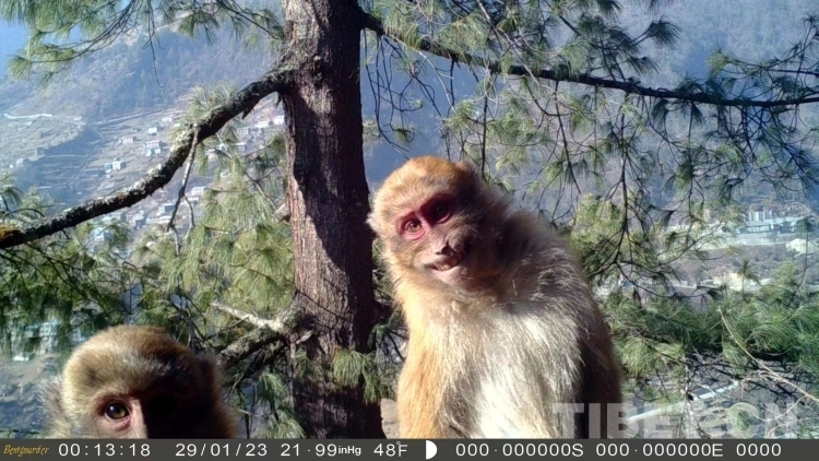 圖為定結(jié)縣珠峰管理分局孔定瑪管護(hù)站在珠峰國家級自然保護(hù)區(qū)內(nèi)通過紅外相機(jī)拍攝到的獼猴。(定結(jié)縣林業(yè)局提供)