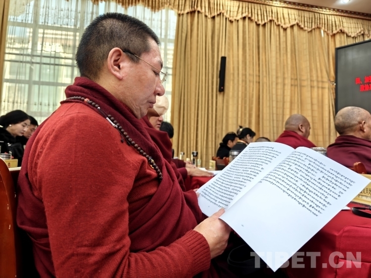 圖為政協(xié)委員認(rèn)真審閱藏文版會議資料 攝影:次旦拉姆