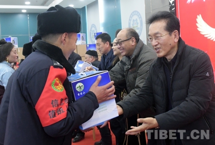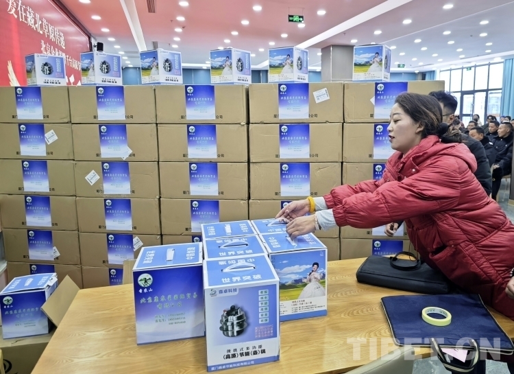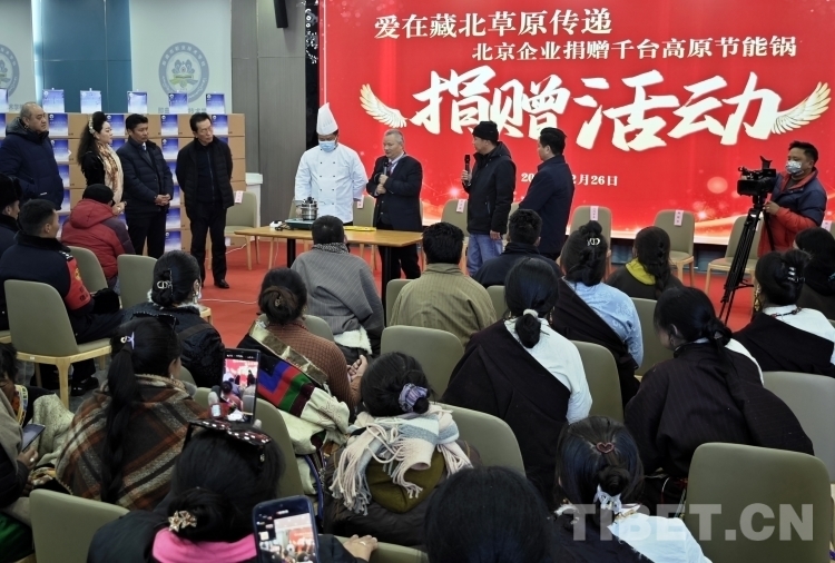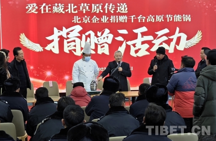 隆冬時(shí)節(jié),藏北大地千里雪飄,寒氣襲人,但在那曲市職業(yè)學(xué)校實(shí)訓(xùn)樓里卻熱鬧非凡。室內(nèi),大型電子屏顯示著“愛在藏北草原傳遞——北京企業(yè)捐贈千臺高原節(jié)能鍋捐贈活動”的字幕。那曲市近百名農(nóng)牧民群眾和環(huán)衛(wèi)工人、鐵路護(hù)路隊(duì)員代表相聚這里接受捐贈。