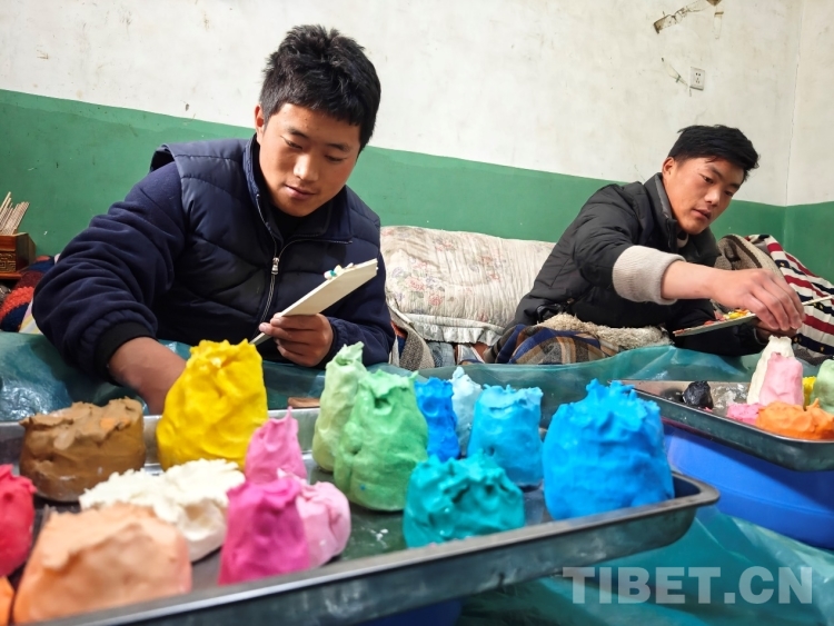 頓珠制作酥油花有近30年的時間,他告訴記者,在他的家鄉(xiāng),酥油花制作技藝是大多數(shù)人從小就掌握的技能,而且代代相傳。“每年藏歷新年前期,我都會帶著兒子們過來捏制、銷售酥油花,銷量很好,是一筆不錯的收入。”