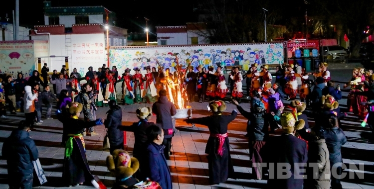“村晚”演出結(jié)束后,演職人員和觀眾們前往社區(qū)廣場(chǎng)圍著篝火,跳起了歡快的果諧?,F(xiàn)場(chǎng),來(lái)自全國(guó)各地的游客熱情參與“村晚”活動(dòng)中,勾畫出民族團(tuán)結(jié)的美好畫面。