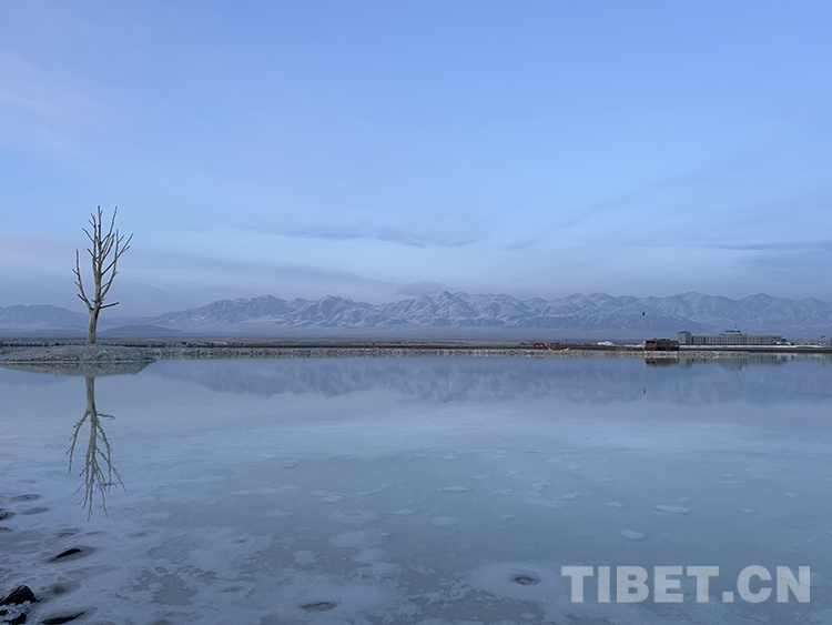 茶卡鹽湖是固液并存的鹵水湖,蒙古語稱“達布遜沃爾”,意為青色的海,此地也以盛產大青鹽馳名,岸邊淺灘隨處可見析出的白色鹽晶。湖泊位于柴達木盆地最東段,地勢相對低洼開闊,北依祁連山支脈完顏通布山,南靠昆侖山支脈旺尕秀山,兩山常年被積雪覆蓋,形成雪峰與湖泊珠璧交輝的獨特高原風光。(中國西藏網(wǎng) 文/李一凡 張萌萌 龍真多吉)