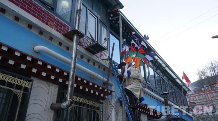 圖為次仁德瓊的家人正在更換新的“塔覺(jué)” 攝影:張曉琪