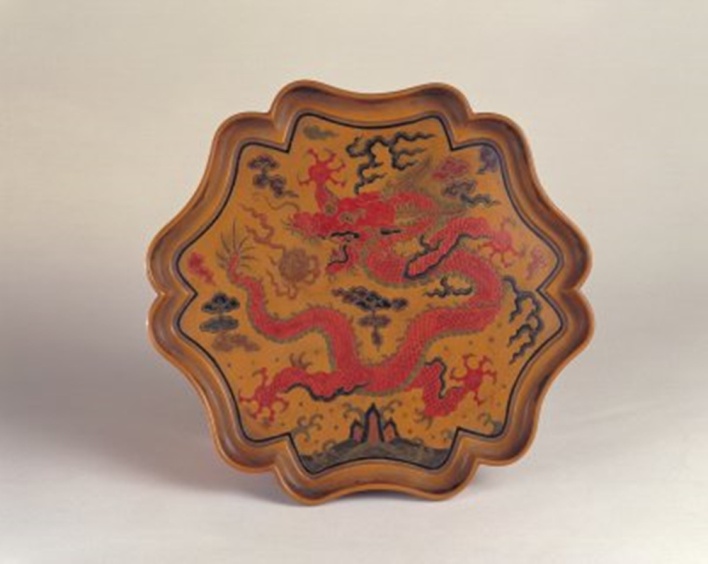 圖為填漆戧金云龍紋葵瓣式盤 圖片來(lái)源:故宮博物院