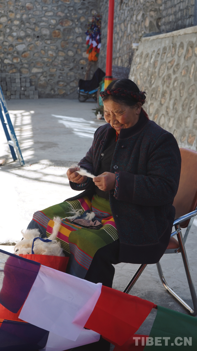 這是我最喜歡的莫啦。住在莫啦家的幾天里,除去采訪、收集素材和寫稿,最放松的時刻就是忙里偷閑和莫啦在廚房烤火、在巷子口曬太陽。莫啦會問我穿得這么少冷不冷,會給我講路過的小女孩有個雙胞胎姐姐,會讓我送熱水給我的同事喝,會拿盛滿卡塞和奶渣的點心盒塞給我吃,會在我想把手頭工作做完再吃飯時問同事我怎么不吃飯。當(dāng)然這些我大多是聽不懂的,有些是德瓊阿佳(莫啦的女兒,拉康社區(qū)婦女主任,同時也是客棧的老板)和達(dá)次哥(這次出差的司機師傅)翻譯給我的,有些是我倆通過比劃猜到的。