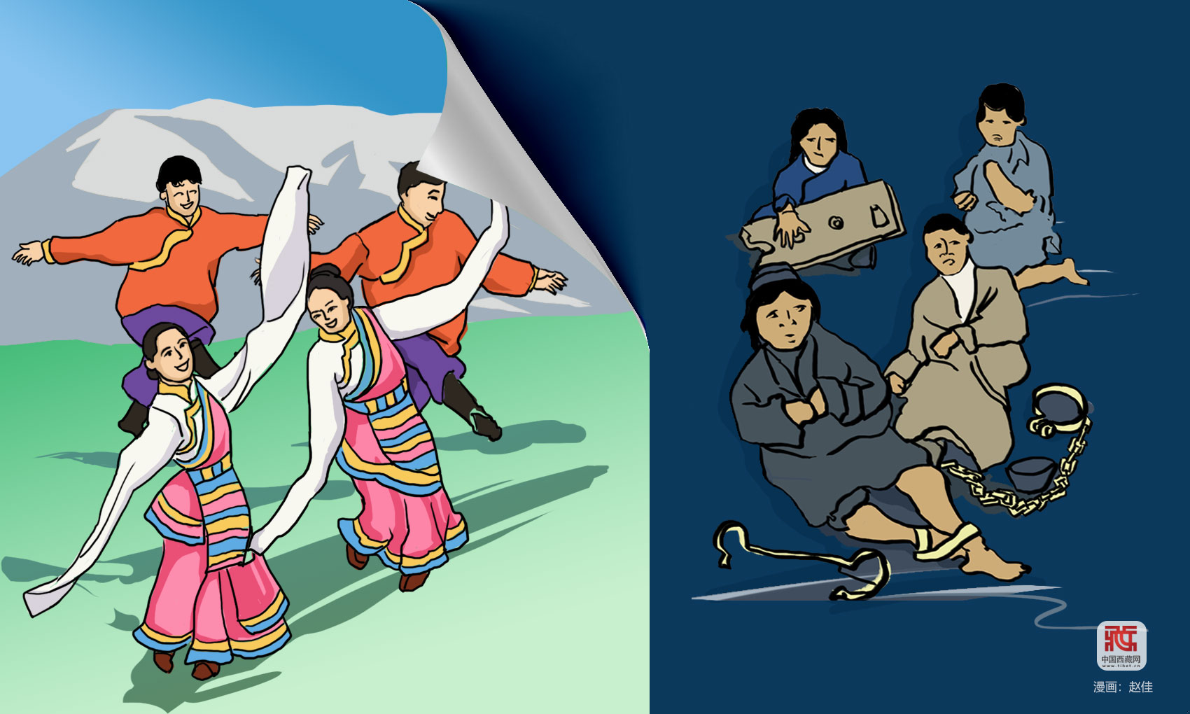 在舊西藏,廣大農(nóng)奴處于社會(huì)最底層,被稱作“會(huì)說話的工具”,三大領(lǐng)主對(duì)農(nóng)奴施以野蠻、殘酷的剝削和壓迫,他們睡牛棚,被當(dāng)馬騎,戴鐵鏈干活……動(dòng)輒就被施以割舌、割鼻、戴石帽、剁手足等酷刑,農(nóng)奴人身自由被剝奪,人權(quán)與尊嚴(yán)被肆意侮辱踐踏,生活狀況慘不忍睹。