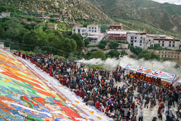 圖為2023年拉薩雪頓節(jié)哲蚌寺展佛現(xiàn)場。雪頓節(jié)距今已有近千年歷史,近年來雪頓節(jié)在各級政府的保護和發(fā)展中,已從單純的民俗文化節(jié)日成為集傳統(tǒng)展佛、體育競技、文藝匯演、經貿洽談、商品展銷、旅游推介、民俗體驗等為一體的復合型節(jié)日。 攝影:趙振宇