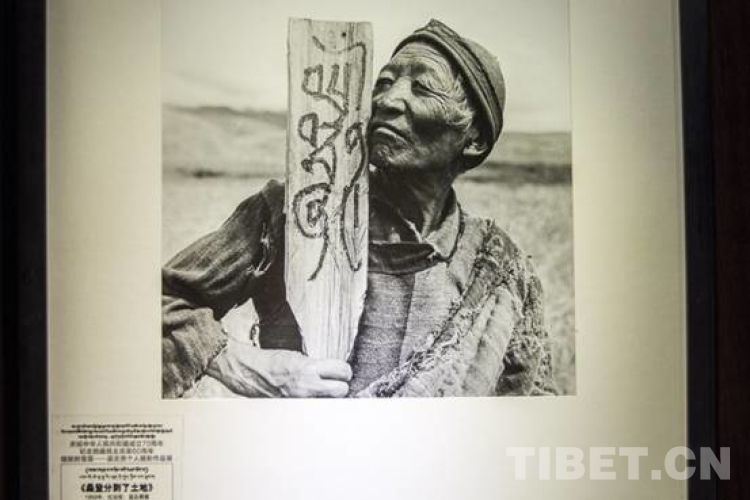 珍貴的照片《桑登分到了土地》拍攝于1959年,身世悲苦的老農(nóng)奴桑登,在分到土地那一天,他把那象征分土地的木牌緊緊地貼在臉頰上,這個(gè)木牌上寫(xiě)著藏文:桑登田。