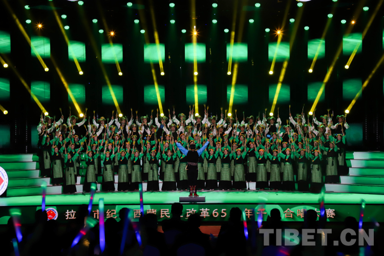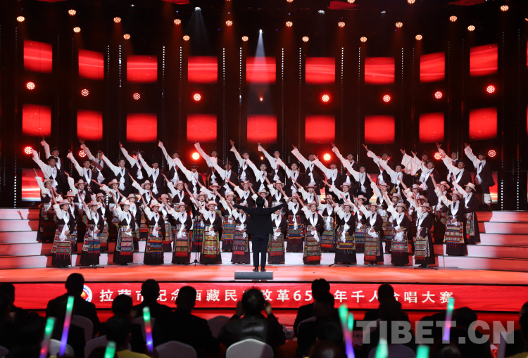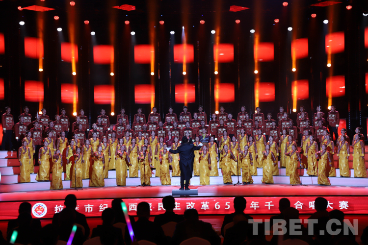 中國(guó)西藏網(wǎng)訊 3月27日晚,《盛世中國(guó) 幸福西藏》拉薩市紀(jì)念西藏民主改革65周年千人合唱大賽在拉薩師范高等??茖W(xué)校體育館舉行。