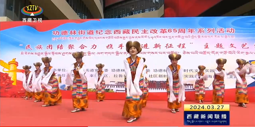圖為西藏自治區(qū)拉薩市功德林街道開展文藝匯演活動 圖源:西藏衛(wèi)視