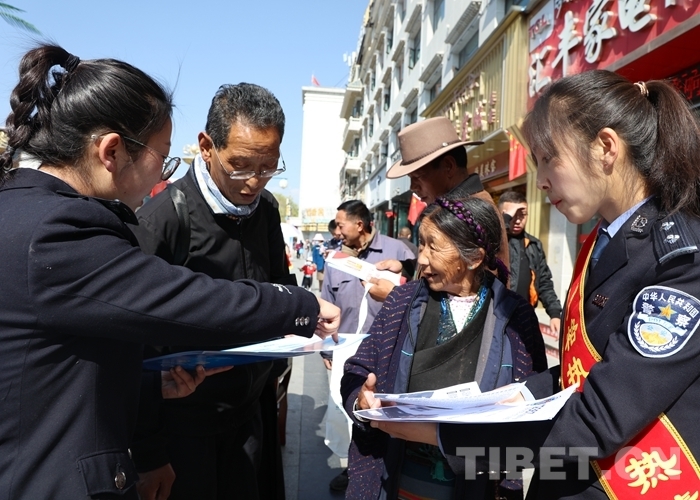 圖為西藏邊檢總站執(zhí)法調(diào)查支隊(duì)民警在街頭宣講