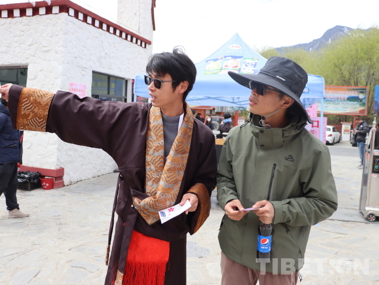 圖為林芝市職業(yè)技術(shù)學(xué)校學(xué)生在打卡點“次仁的家”服務(wù)游客