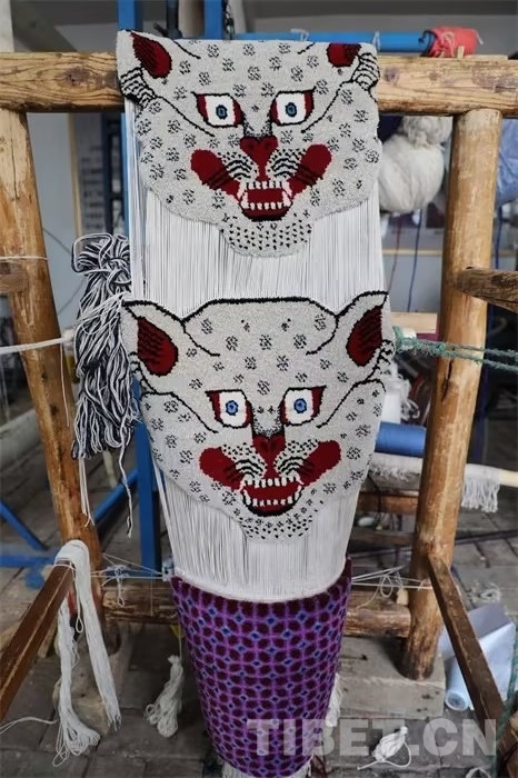 圖為搭在傳統(tǒng)木質織架上的藏毯制品 攝影:王茜