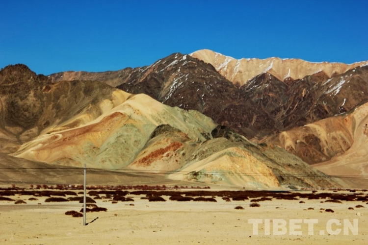 阿里地區(qū)地形復(fù)雜多樣,大致分為高原湖盆區(qū)、高山寬谷區(qū)、高山峽谷區(qū)三種形態(tài)。高海拔、高寒、日照時間長且輻射強(qiáng)等自然條件,使得阿里地區(qū)不僅擁有雄渾壯麗的高原風(fēng)光,而且隨海拔、光照、季節(jié)、山體巖層所含礦物質(zhì)種類等因素呈現(xiàn)出色彩繽紛的變化。圖為阿里地區(qū)噶爾縣一處多彩的山體 攝影:劉莉