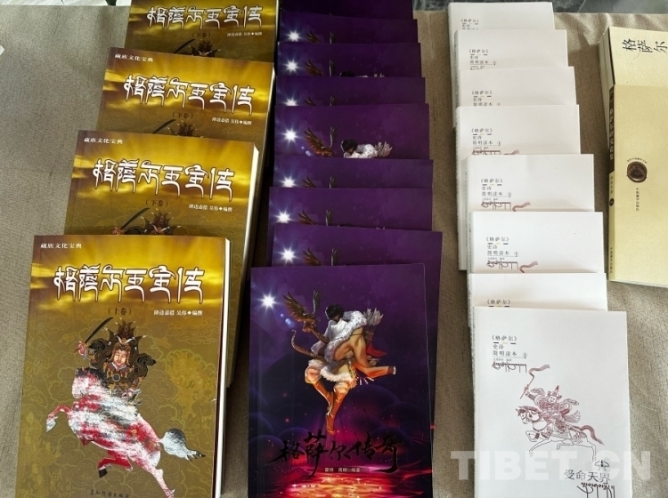 圖為展覽區(qū)內(nèi)格薩爾王相關(guān)書籍 攝影:旦曲