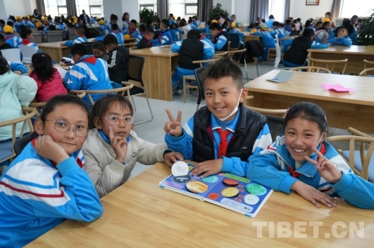 來自拉薩市實驗小學(xué)三年級十班的丹增朗杰平時就很喜歡看書,“今天能跟這么多同學(xué)一起來圖書館有一種不一樣的感覺,我看了很多書,認識到了很多我以前不會的字,我很開心?!?/p>