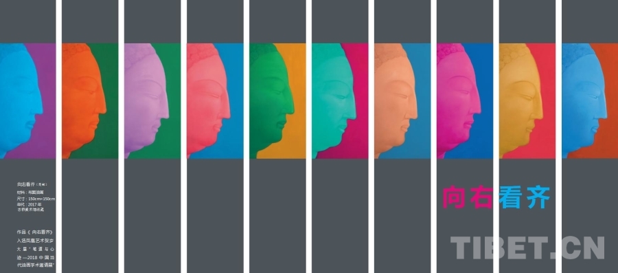 在創(chuàng)作過(guò)程中,陶宏嘗試將傳統(tǒng)佛像藝術(shù)與現(xiàn)代油畫(huà)技法相結(jié)合,融入現(xiàn)代審美元素和時(shí)代精神?!拔蚁M梦鞣降挠^念來(lái)表達(dá)東方精神,這就是互鑒與融合?!碧蘸甑挠彤?huà)作品《漢字雕塑》《覺(jué)者》、《向右看齊》等受到沃霍爾、克洛斯的影響,中外文化在時(shí)空的交融與碰撞中,即刻產(chǎn)生出新的觀念。借助現(xiàn)代藝術(shù)手法和觀念,陶宏嘗試對(duì)佛像藝術(shù)進(jìn)行解構(gòu)與重塑。通過(guò)打破傳統(tǒng)的創(chuàng)作界限,將佛像與周?chē)h(huán)境、人物以及情感進(jìn)行融合,創(chuàng)造出一種新的藝術(shù)表達(dá)方式,更加自由、開(kāi)放。