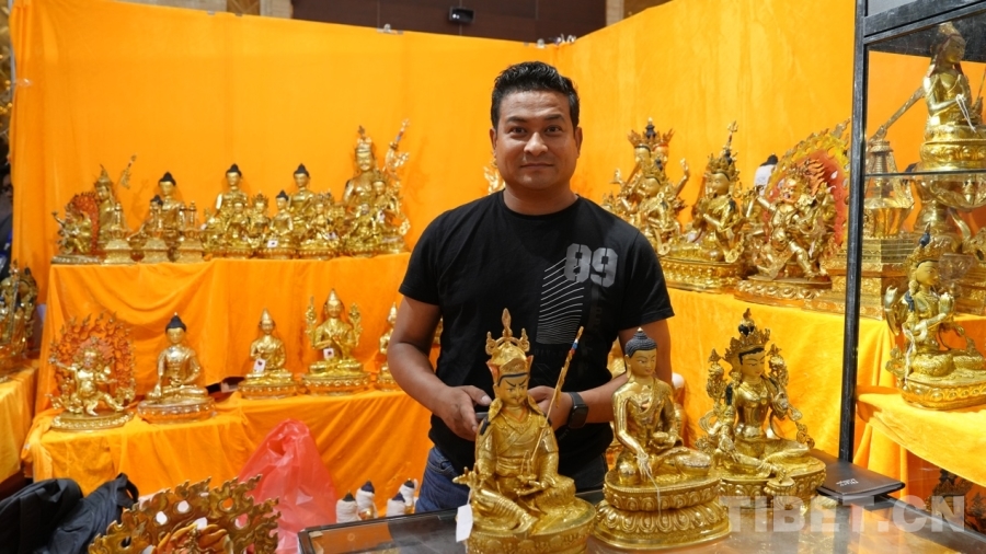 Bikram來自尼泊爾首都加德滿都,十年前來過拉薩,深深被這座城市所吸引,這次通過中外商品展銷會(huì)再次來到一直向往的拉薩,他非常開心。“我們尼泊爾的手工藝品在全世界出名,這次我們從尼泊爾帶來的有唐卡、佛像、毛毯等,都是全手工制作的,希望在此次展銷會(huì)能夠得到西藏消費(fèi)者的支持與喜愛?!?/p>