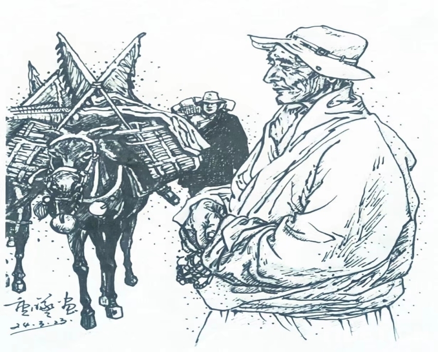 民國(guó)時(shí)期,西來(lái)的藏族騾幫,胸前都掛著碗口大的銅鈴,額頭上懸著避邪鏡,脖子上掛著小旗,上書“開(kāi)路先鋒”“一路順風(fēng)”“一路平安”的藏漢雙文,紅底白字。旗子上蓋有西藏、西康的政府關(guān)防大印,馬幫就憑此闖關(guān)過(guò)卡,碰上迎面而來(lái)的馬幫,也仗此要對(duì)方讓路。