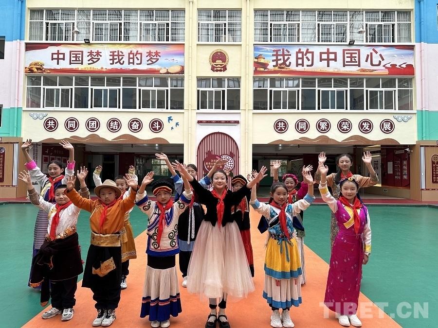 圖為香格里拉市民族小學的孩子們身著民族服飾載歌載舞 攝影:楊眉笑