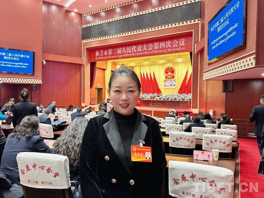 圖為林芝市人大代表付燕在林芝市人大會場留影