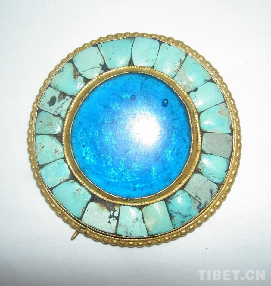 大英博物館藏19世界圓形銅鎏金鑲藍玻璃綠松石飾品(17號)
