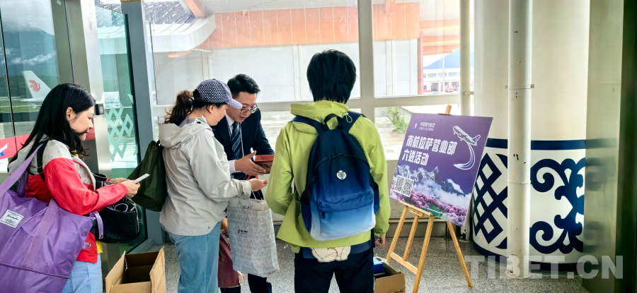 現(xiàn)場,南航拉薩營業(yè)部聯(lián)動林芝米林機場,在登機口舉辦“首航有禮”活動,向旅客發(fā)放南航紀念品和民族團結(jié)禮品,積極宣傳深圳——林芝航線的航班班期、執(zhí)飛機型和飛行時間等情況,介紹南航在西藏自治區(qū)的航線分布情況。