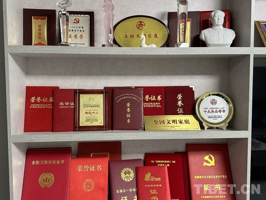 全國(guó)五一勞動(dòng)獎(jiǎng)?wù)芦@得者、全國(guó)民族團(tuán)結(jié)進(jìn)步模范個(gè)人,自治區(qū)民族團(tuán)結(jié)進(jìn)步模范個(gè)人、新疆“十大杰出母親”、全國(guó)文明家庭……記者走進(jìn)吳秀芳老人家,一面碩大的榮譽(yù)墻映入眼簾,這些都是吳秀芳——這位錫伯族母親二十多年風(fēng)雨歷程最好的見證。50年代出生的她,見證了新中國(guó)的成長(zhǎng),也經(jīng)歷了個(gè)人的坎坷與挑戰(zhàn)。
