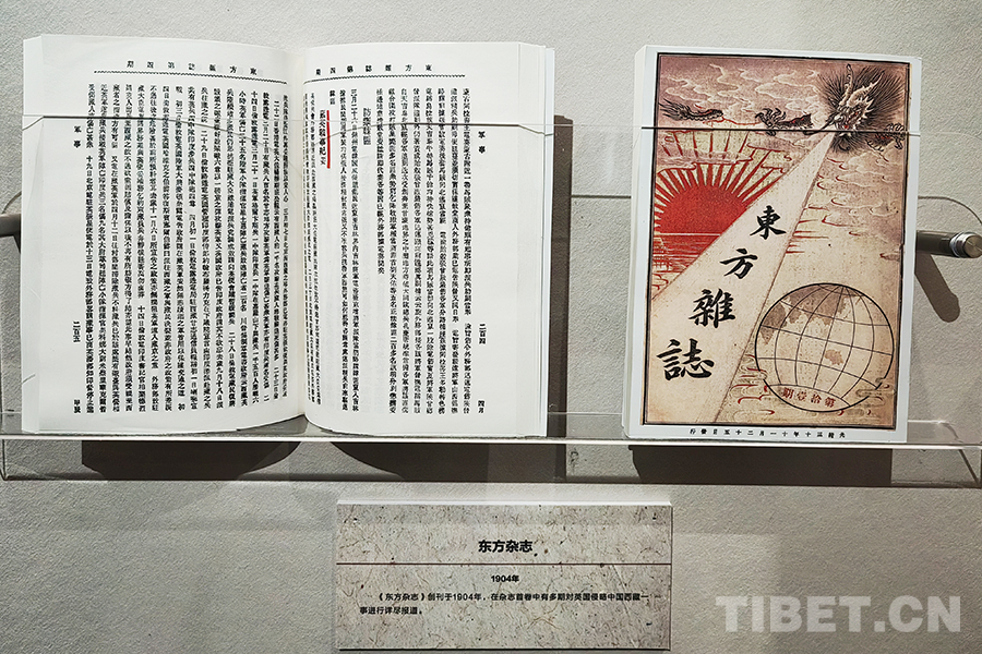 圖為創(chuàng)刊于1904年的《東方雜志》,雜志首卷對(duì)英國(guó)侵略西藏一事進(jìn)行了詳盡報(bào)道。拍攝于紀(jì)念西藏江孜抗英保衛(wèi)戰(zhàn)120周年主題展 攝影:楊月云