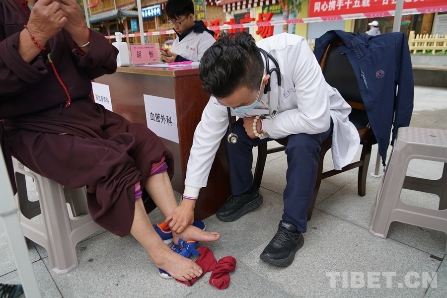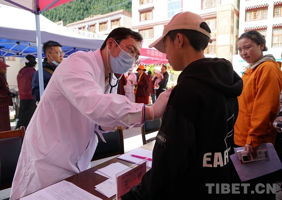 7月7日,“同心共鑄·情暖甘孜——‘同心·共鑄中國心’2024甘孜行”活動走進白玉縣,在縣城中心新時代文明實踐廣場開展義診活動。來自清華大學附屬北京清華長庚醫(yī)院、首都醫(yī)科大學附屬北京安貞醫(yī)院、中日友好醫(yī)院、北京大學首鋼醫(yī)院、北京豐臺醫(yī)院等首都12家醫(yī)療衛(wèi)生機構的23位醫(yī)療專家在現(xiàn)場為當?shù)厝罕娞峁┝x診、咨詢、彩超檢查等醫(yī)療服務,并免費發(fā)放藥品。