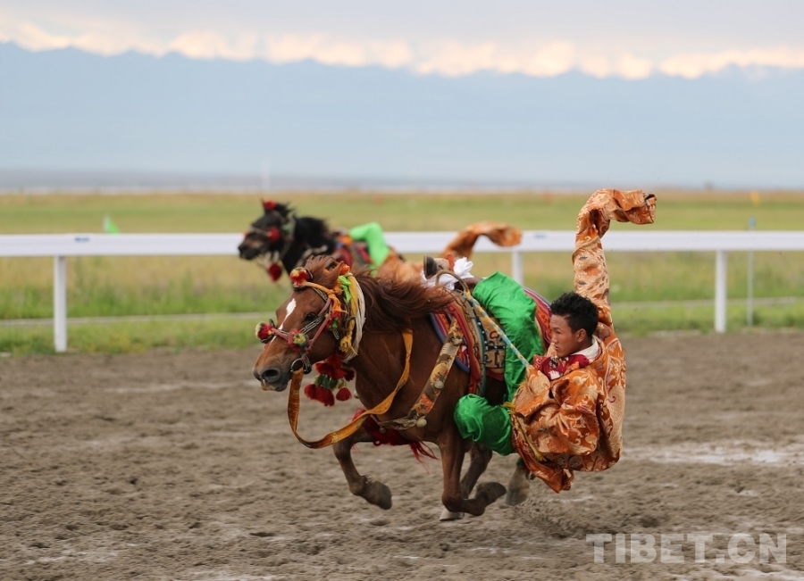 圖為康巴馬術(shù)項(xiàng)目“跑馬懸體” 攝影:達(dá)哇才讓