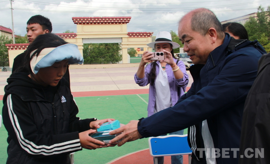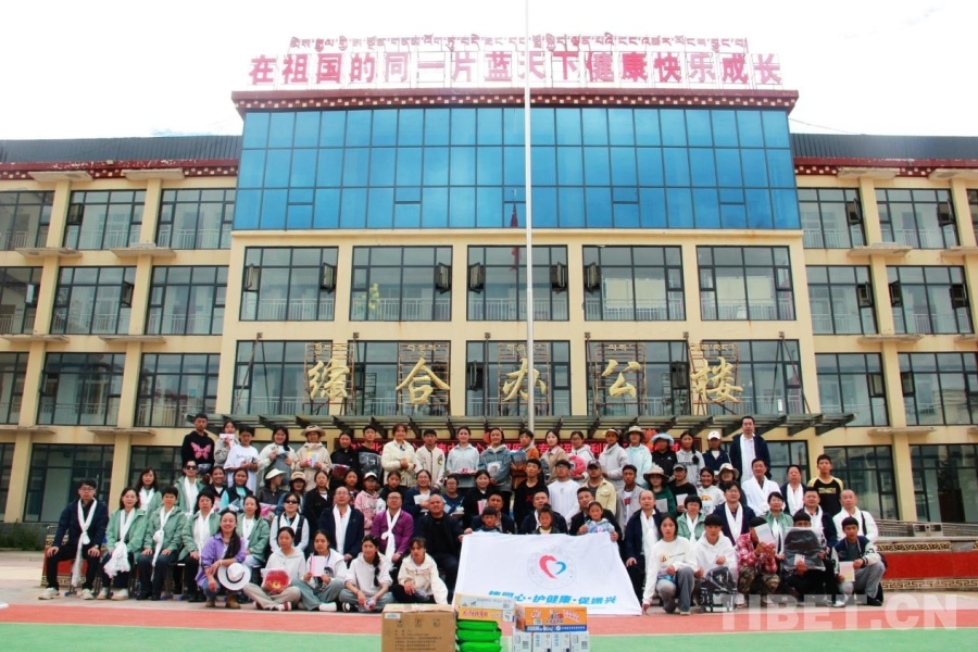 圖為2024“同心·共鑄中國心”甘孜行大型公益活動赴甘孜縣醫(yī)療專家們?yōu)楦首沃菘当眱和@喊l(fā)起愛心捐贈 攝影:劉莉