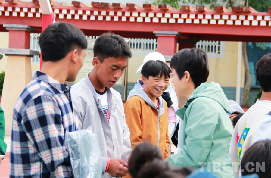 圖為中國中醫(yī)科學(xué)院西苑醫(yī)院婦科醫(yī)生杜小果為甘孜州康北兒童福利院的孩子們送上慰問品 攝影:劉莉