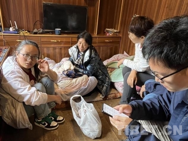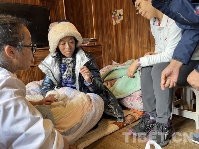 在義診活動(dòng)進(jìn)行的同時(shí),幾位專(zhuān)家還分撥前往貧困家庭慰問(wèn)。其中,北京地壇醫(yī)院的中醫(yī)科副主任楊玉英,北京地壇醫(yī)院婦科副主任劉軍,北京老年醫(yī)院呼吸科副主任劉前桂,北京大學(xué)第一醫(yī)院骨科副主任徐貝宇一行來(lái)到了離措拉鎮(zhèn)不遠(yuǎn)的德西村山坡上,去阿珍家慰問(wèn)看診。據(jù)了解,阿珍的母親沖曲措于 2019 年進(jìn)行了胃癌手術(shù),術(shù)后做了五次化療,于 2020 年末完成化療。然而,2024 年 6 月份,沖曲措又被查出患有肺炎。由于吃不下飯,沖曲措體重嚴(yán)重下降,營(yíng)養(yǎng)嚴(yán)重不良。。