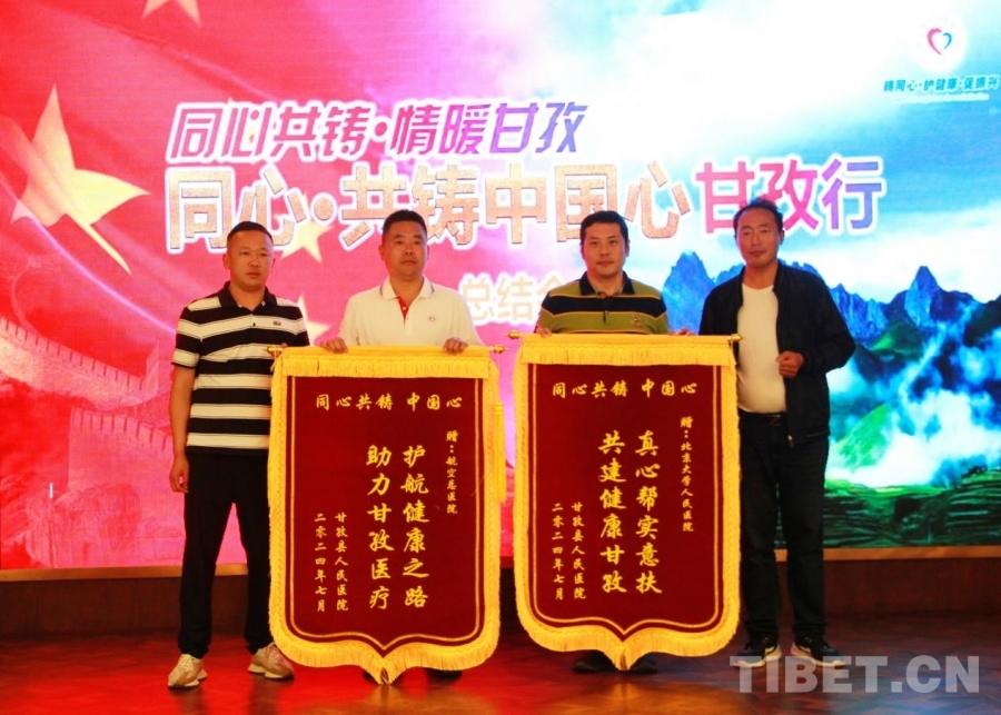 總結(jié)會(huì)上,甘孜縣有關(guān)領(lǐng)導(dǎo)向“同心·共鑄中國(guó)心”組委會(huì)贈(zèng)送了錦旗,向醫(yī)療專家志愿者代表送上了感謝信;甘孜縣人民醫(yī)院向北京大學(xué)人民醫(yī)院和航空總醫(yī)院贈(zèng)送了錦旗;醫(yī)療專家志愿者代表和志愿者代表分別談了活動(dòng)參與感受和建言。