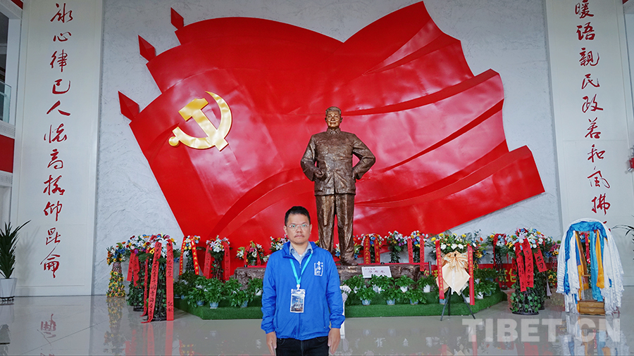 圖為青海省港區(qū)政協(xié)委員、本次研學團副團長王偉杰在尕布龍時代楷模紀念館。攝影:李泓慶