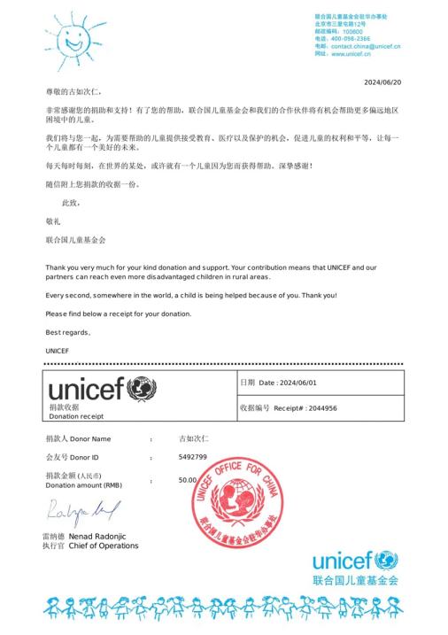 “之后的每個(gè)月我都會(huì)把省吃儉用節(jié)約下來的錢捐贈(zèng)給聯(lián)合國(guó)兒童基金會(huì),雖然每月捐贈(zèng)的金額數(shù)不大,但我這幾年一直力所能及地堅(jiān)持做著這件事。”古如次仁說,到大學(xué)后每月還有勤工儉學(xué)的收入,所以我會(huì)繼續(xù)堅(jiān)持做這件事,能通過自己的方式幫助到貧困兒童非常有意義。