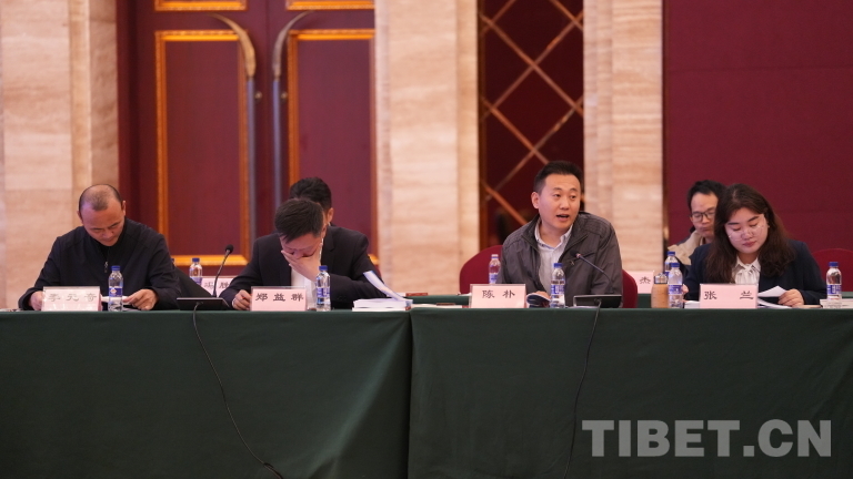 圖為西藏自治區(qū)社會(huì)科學(xué)院經(jīng)濟(jì)戰(zhàn)略研究所所長(zhǎng)、研究員陳樸進(jìn)行交流發(fā)言 攝影:德吉卓瑪