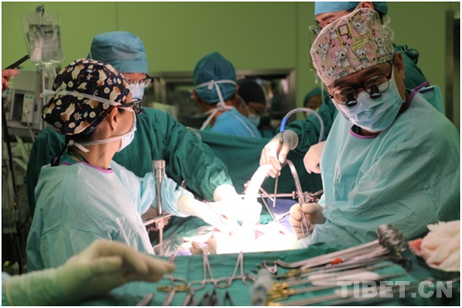圖為醫(yī)療專(zhuān)家團(tuán)隊(duì)正在為患兒實(shí)施手術(shù) 攝影:龍真多吉