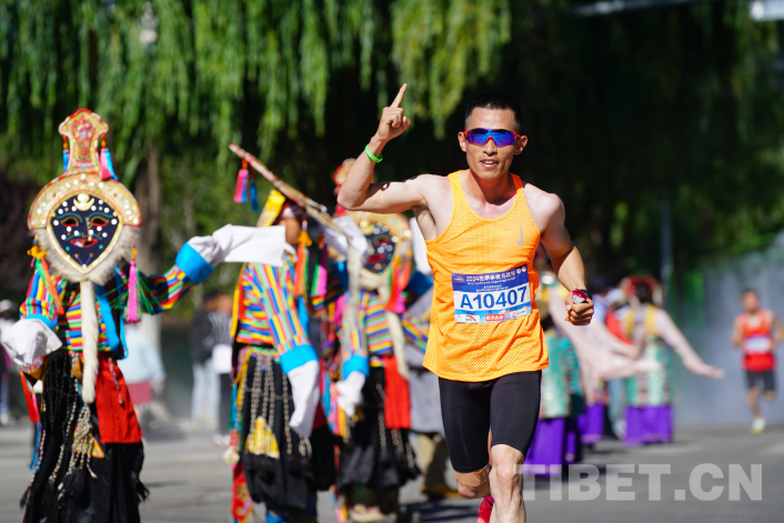 圖為2024拉薩半程馬拉松男子組第一名頓珠次仁 攝影:趙振宇
