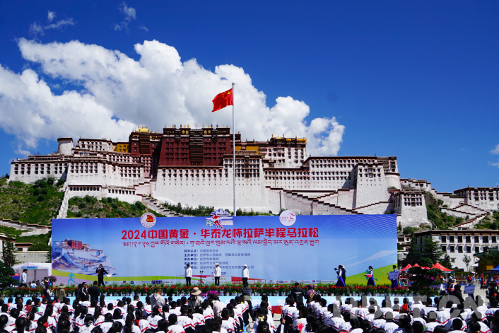 上午9時,隨著一聲發(fā)令槍響,參賽選手從拉薩市會展中心蜂擁沖出起跑線,在夏日高原獨有的清涼中,你追我趕,奮力角逐。拉薩半程馬拉松自2018年開賽已成功舉辦四屆,作為全國海拔最高的省會城市馬拉松,每屆都吸引大量來自全國各地的馬拉松愛好者前來參賽。本屆賽事以“美麗拉薩游 奔跑向未來”為主題,依托拉薩美麗的自然景觀優(yōu)勢和深厚的歷史文化底蘊,致力打造最美賽道。